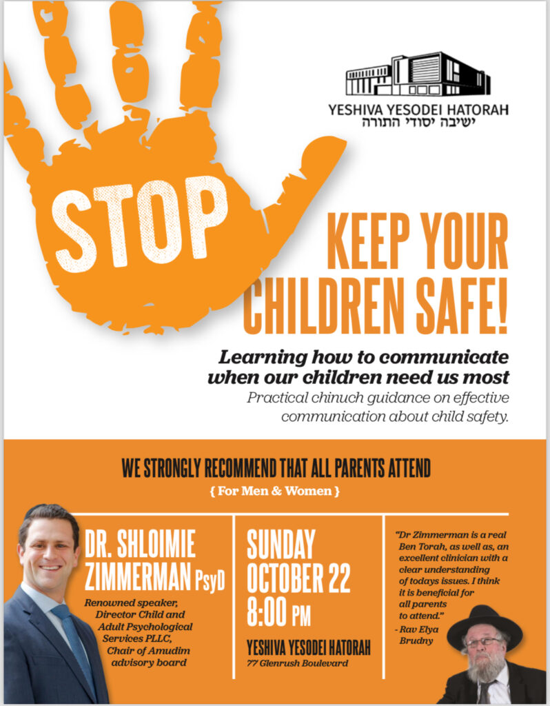 Learn how to communicate when our children need us most. R’ Moti Rapoport & Dr. Shloimie Zimmerman – Yeshiva Yesodei Hatorah Toronto – 10-22-23 #Safety #Abuse Prevention #Parenting #Communication #Speech