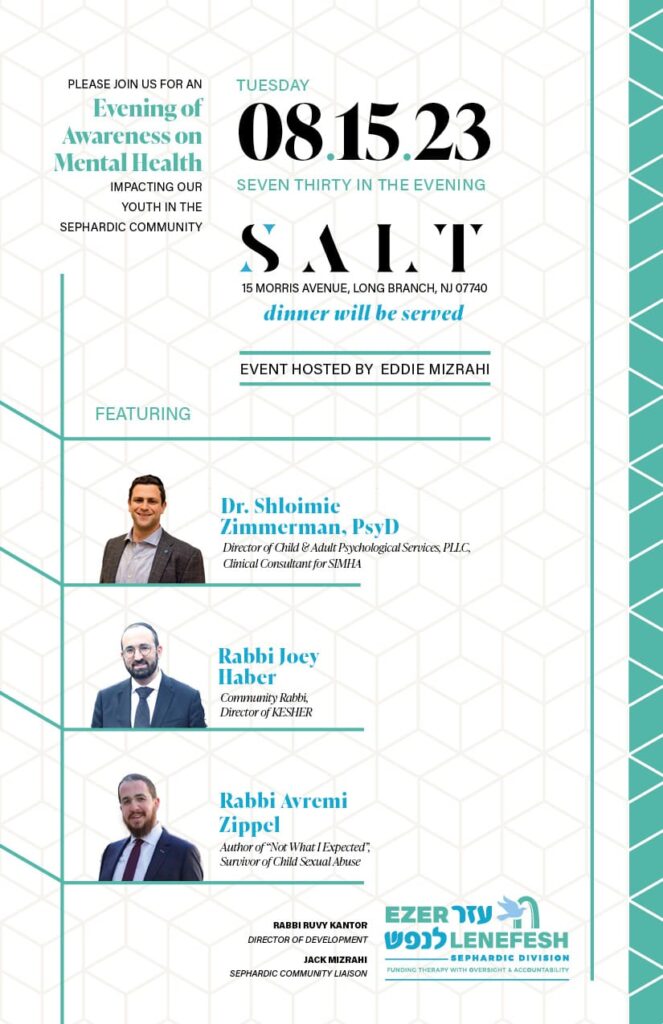 Impacting our youth in the Sephardic community on behalf of Keren Ezer L’Nefesh – Dr. Shloimie Zimmerman – R’ Avremi Zippel – R’ Joey Haber – Hosted by Mr. Eddie Mizrahi – August 2023 #Mental health #Finances #Charity #Abuse #Speech